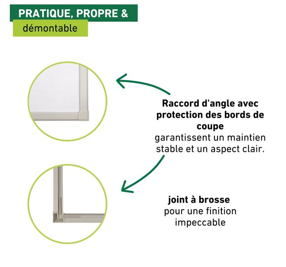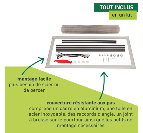- ALL-IN-ONE - Cadre en aluminium, toile en acier inoxydable, raccords d'angle et joint à brosse