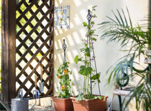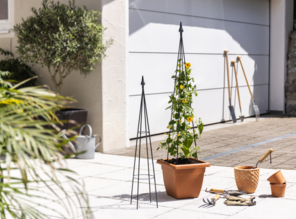 Un support pour fleurs et plantes potagères grimpantes offre soutien et structure. Qu'il s'agisse d'une tour en métal, d'un treillis en bois de pin certifié FSC ou d'une tourelle à tomates de différentes formes, il existe un accessoire adapté à chaque plante.