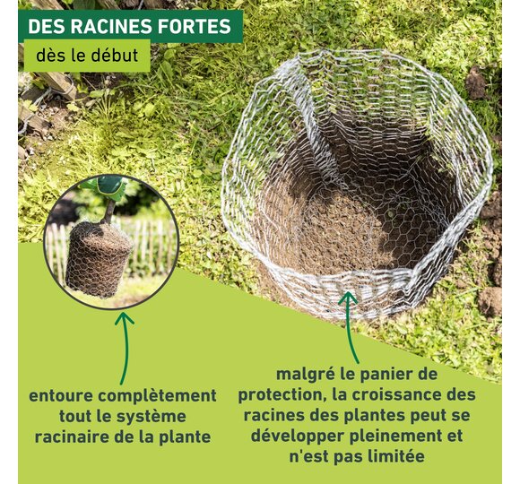 - DES RACINES FORTES DÈS LE DÉBUT - Les racines des plantes s’épanouissent pleinement, leur croissance n’est pas limitée par la corbeille de protection