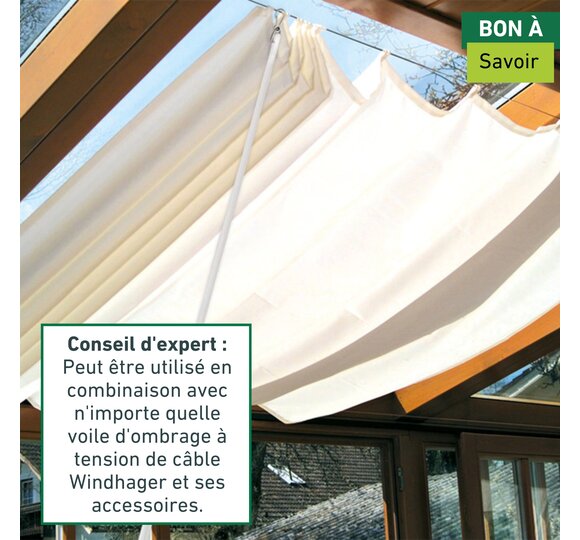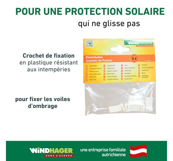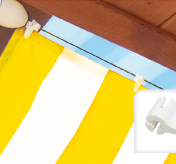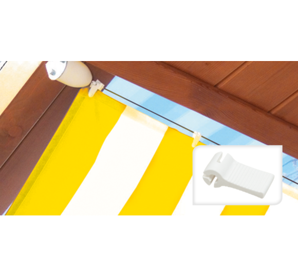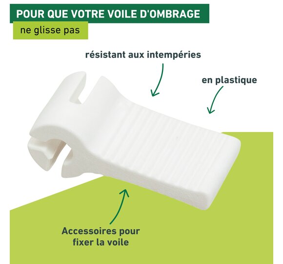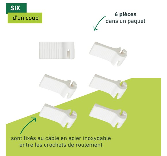 Les crochets de fixation en plastique résistant aux intempéries se fixent entre les crochets de guidage sur le câble en acier inoxydable.