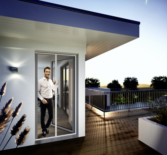 La moustiquaire plissée innovante pour portes peut être repliée dans toutes les positions et est très peu encombrante. Le tissu plissé est particulièrement résistant et la moustiquaire peut donc être utilisée pendant plusieurs années. La disposition du cordon de tension correspond à une technologie brevetée et permet un montage facilité et intuitif.
