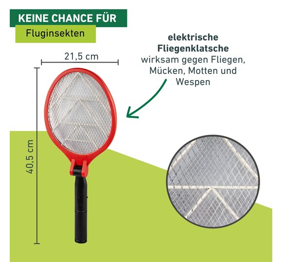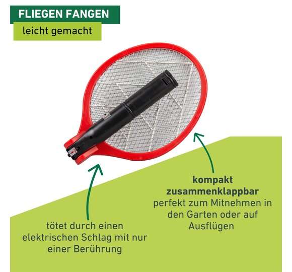 Les insectes volants comme les mouches, les moustiques, les mites et les guêpes nous irritent souvent. Ils sont souvent des hôtes indésirables, notamment à l’intérieur ou au cours des repas. La raquette électrique ACCU COMFORT vous permet de les chasser de manière irréversible. Vous n’avez qu’à attendre qu’ils se posent pour les frapper. Les insectes sont éliminés d’un simple contact avec la raquette électrique, sans poison ni produit chimique. Le grillage sous tension est électriquement chargé et émet un petit choc électrique au contact d’un insecte, qui tombe immédiatement, raide mort. La poignée se replie entièrement. Une fois pliée, vous pouvez ranger la raquette à insectes de manière compacte ou l’emporter avec vous. La raquette à insectes ne prend pas beaucoup de place dans votre sac ou sac à dos et est le compagnon idéal lors de vos excursions à la pêche, au camping, etc.