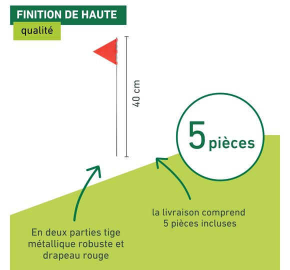 - PAQUET DE CINQ – Cinq fanions de balisage sont inclus dans la livraison
