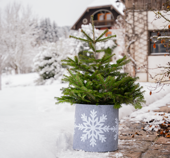 - LE CHARME DE L’HIVER DANS ET AUTOUR DE LA MAISON - Le voile décoratif pour pots en feutre donne une note hivernale aux pots de plantes sur la terrasse, le balcon ainsi que dans l’appartement et la maison.