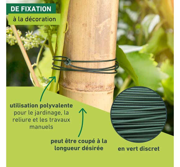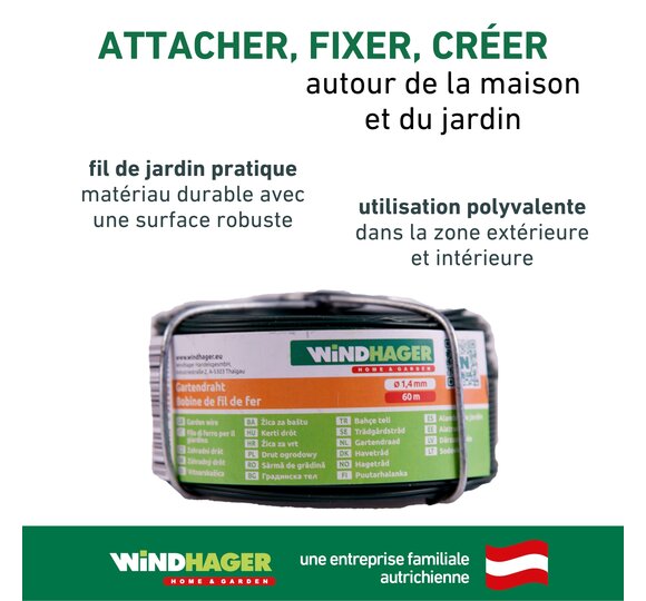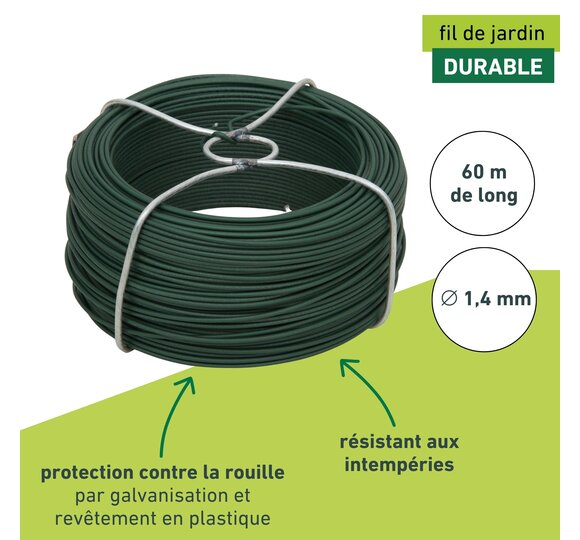 Ce fil offre de nombreuses possibilités d'utilisation, non seulement dans le jardin, mais aussi à la maison et dans les loisirs. Excellente protection contre la rouille grâce à la galvanisation et au revêtement synthétique. Disponible en différentes longueurs et épaisseurs.