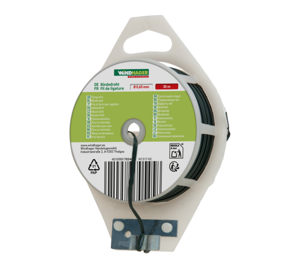 Ce fil de liage robuste peut être utilisé de manière polyvalente dans la maison et le jardin et sert p. ex. de soutien et de fixation des plantes de tout type. Avec fil de liage revêtu de plastique vert. Dans un distributeur libre-service pratique avec dispositif de coupe pour le sectionnement individuel selon le besoin. Disponibles dans deux longueurs différentes.