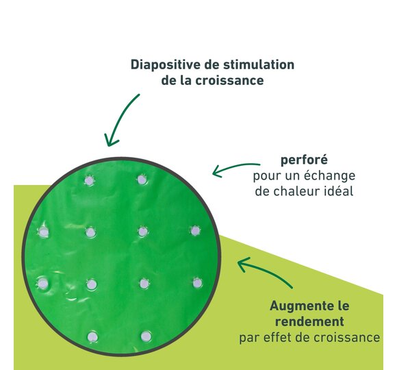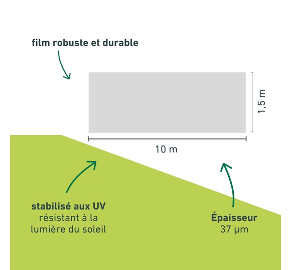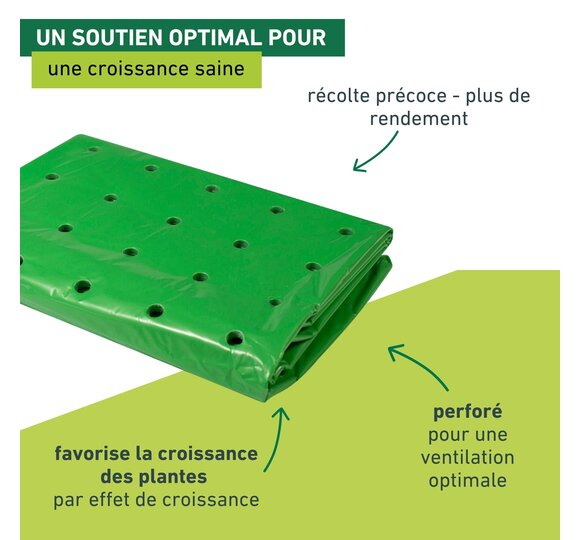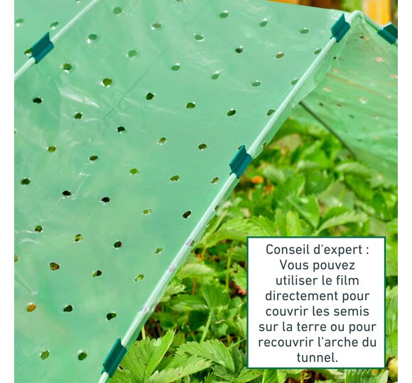 Utilisable pour recouvrir directement les plants au niveau du sol ou pour tendre par-dessus l'arceau de tunnel (Réf. 06326). Perforé pour une aération optimale.