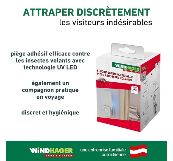 Bon à savoir :les plaques adhésives de rechange Windhager sont le complément idéal du piège adhésif anti-insectes, qui est vendu séparément.