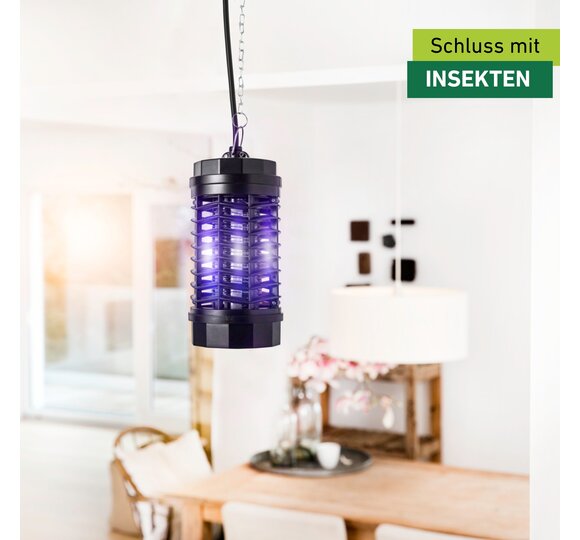 La lampe anti-moustiques ne doit être utilisée qu’à l’intérieur afin qu’elle ne capture pas accidentellement des insectes utiles tels que le papillon. Idéalement, l’appareil peut être suspendu au crochet de montage à une hauteur de 2 m et protéger une surface allant jusqu’à 20 m². Les meilleurs résultats de capture sont obtenus dans l’obscurité. Il convient pour cela d’installer ou de suspendre la lampe de protection à la tombée de la nuit ou dans un endroit faiblement éclairé, p. ex. un cellier.