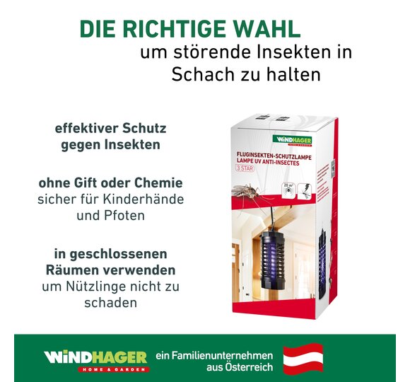 - DITES ADIEU AUX INSECTES VOLANTS À L’INTÉRIEUR – La lampe de protection 3 Star de Windhager a une surface d’efficacité de 20 m2 et protège vos locaux des insectes volants gênants