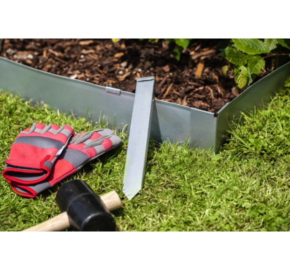 Grâce à la bande de bordure à gazon Windhager, les surfaces de gazon peuvent être facilement délimitées avec du gravier, du sable, du ballast, des copeaux d’écorce, etc. Fixer l’ancrage dans le sol et stabiliser la bordure à gazon, notamment en cas de sol meuble et en cas de faible profondeur de sol. Un piquet d’ancrage par mètre apporte déjà le soutien nécessaire pour éviter que la bordure à gazon se déplace vers le haut. Les piquets d’ancrage sont également parfaits en cas de nouvelles réalisations de bordures, car ils sécurisent la bande de bordure à gazon pendant la pose et permettent de travailler avec précision.