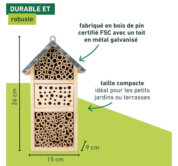 • MAISON COMPACTE - Convient également aux petits jardins ou aux terrasses tout en conférant d’importants avantages aux insectes