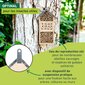 L’hôtel à insectes compact Tiny est une aide précieuse pour les insectes utiles locaux. De plus, il constitue un joli élément de décoration dans le jardin. Il offre notamment un lieu de nidification sûr aux différentes espèces d’abeilles sauvages et de guêpes solitaires. Les tubes en bambou et le gros bloc de bois avec des ouvertures percées à remplir créent un abri attrayant et au plus proche de la nature pour ces précieux auxiliaires. De plus, grâce à son système de suspension pratique, il peut être facilement placé à un endroit approprié à l’extérieur.
