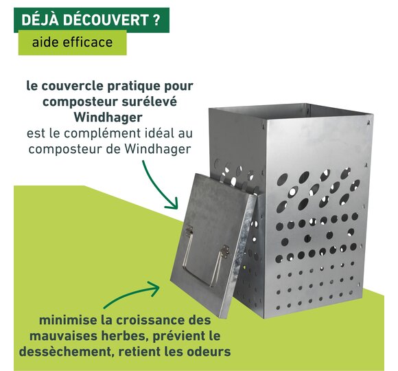 Le couvercle du composteur pour potagers surélevés de Windhager complète parfaitement le produit pour en faire un système de compostage fermé.