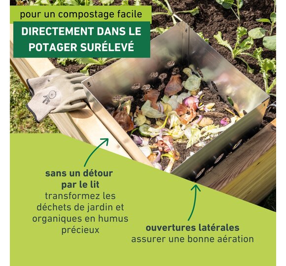 • ACCESSOIRE ASTUCIEUX - Le composteur pour potagers surélevés transforme les déchets verts en un précieux humus directement dans le potager