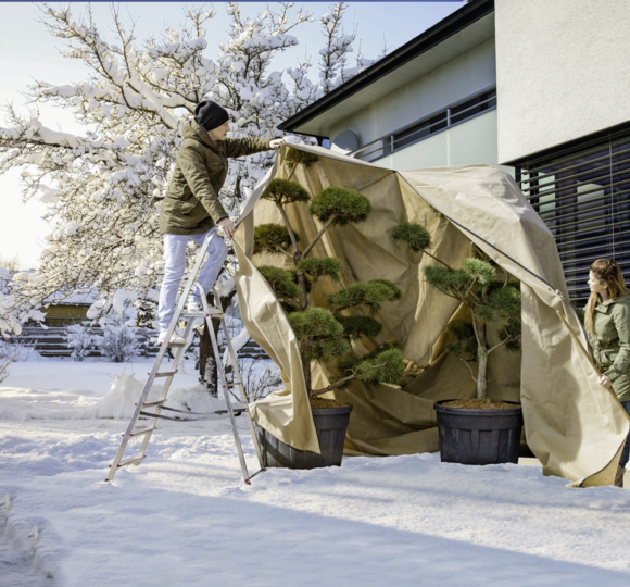 Pour que les plantes méditerranéennes telles que les oliviers se sentent bien en hiver, elles doivent être protégées du gel. La bâche en non-tissé méga Windhager est idéale pour cela, également pour les grand exemplaire !