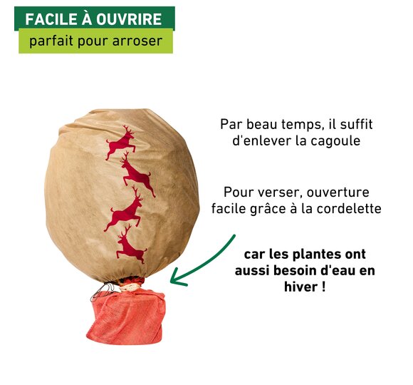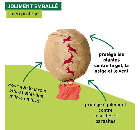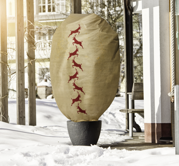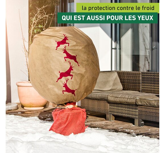 • la housse décorative avec motif cerf protège les plantes contre le gel, la neige et le vent