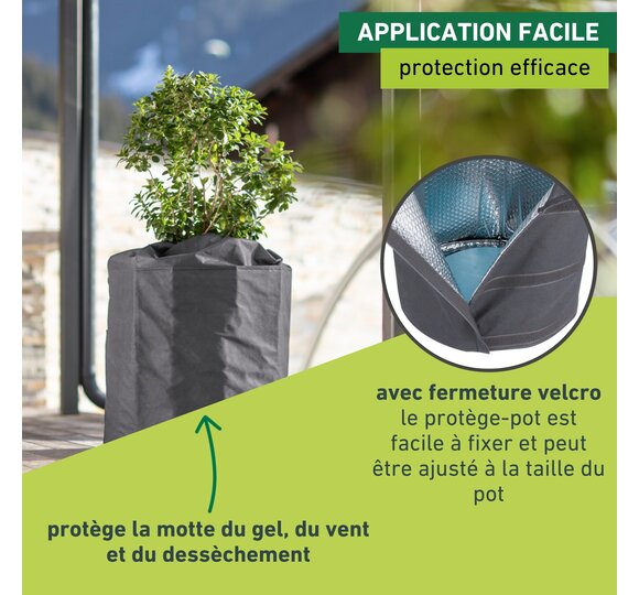 - UTILISATION FACILE - Le manteau de protection s’ouvre et se ferme à l’aide d’un cordon de serrage et d’une fermeture velcro. La plante s’emballe et s’arrose facilement.