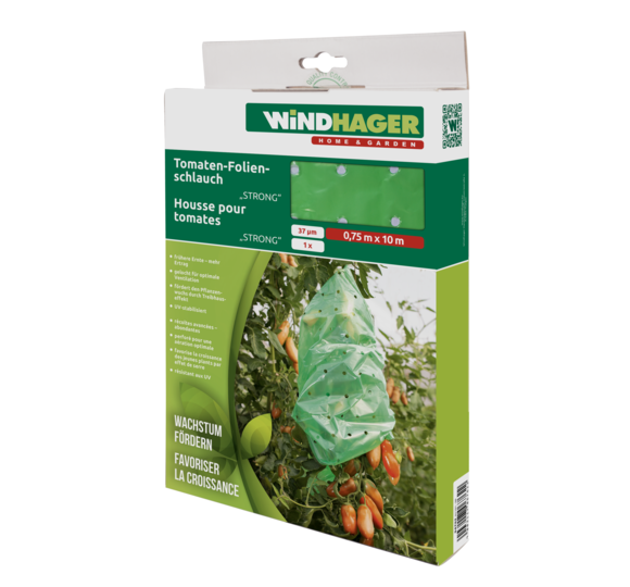 La housse perforée crée un échange thermique optimal et une aération parfaite. L'effet de serre résultant favorise à son tour la croissance de la plante. Le film housse pour tomates offre une protection contre la grêle, la pluie et le gel.