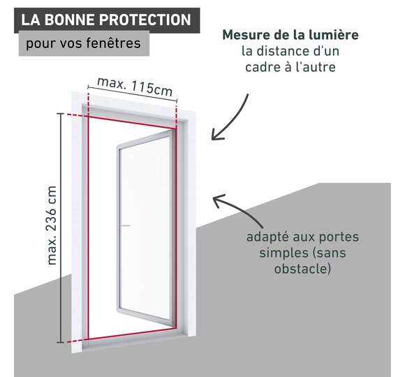 - FIXATION STABLE AVEC MONTAGE SUR CHARNIÈRES - Visser la porte-moustiquaire sur le cadre de la porte à l'aide de charnières (matériel de fixation inclus) ; autres types de montage possibles avec accessoires (sans perçage, collage ou serrage).