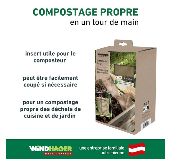 Grâce à ce composteur en jute très pratique, le compostage propre des déchets de cuisine et de jardin devient un jeu d’enfant. Il crée également des conditions optimales pour un microclimat sain et accélère la décomposition. Le tuyau en jute est flexible et peut être utilisé dans des composteurs en bois ou en métal. En outre, il peut être facilement découpé si nécessaire. Cerise sur le gâteau : le tapis est composé de matériaux 100 % naturels.