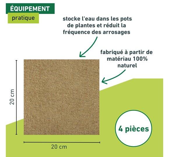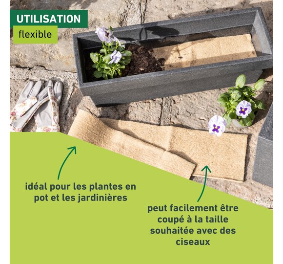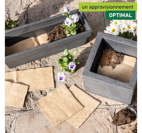 Les tapis sont disponibles en format carré ou rectangulaire et peuvent être découpés selon les besoins à l’aide de ciseaux.La cerise sur le gâteau :les tapis d’irrigation sont composés de matériaux 100 % naturels.