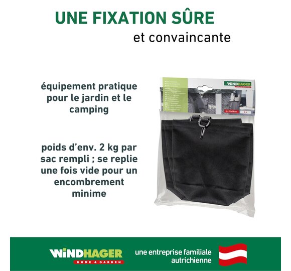 En cas de vents forts ou d’intempéries, les accessoires de jardin comme les bâches ou les housses sont rarement épargnés. Pour les maintenir en place, les solides sacs de sable MINI de Windhager sont l’allié idéal. Une solution simple et efficace pour lester housses de meubles de jardin, tentes de plage et matériel de camping.