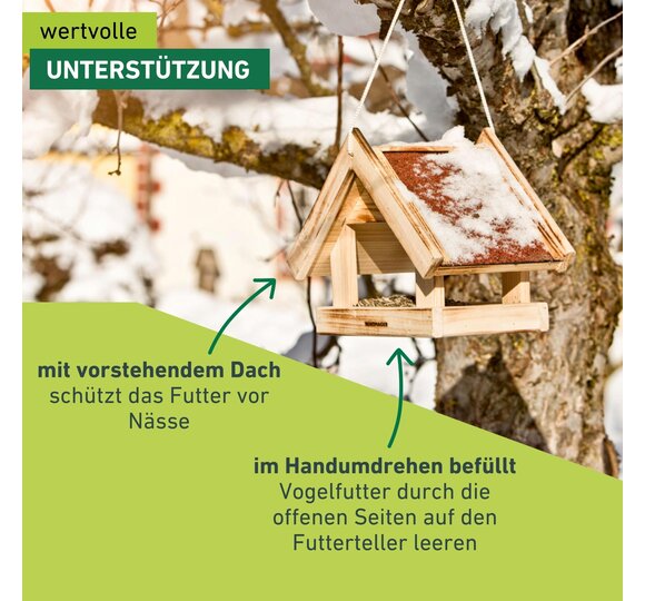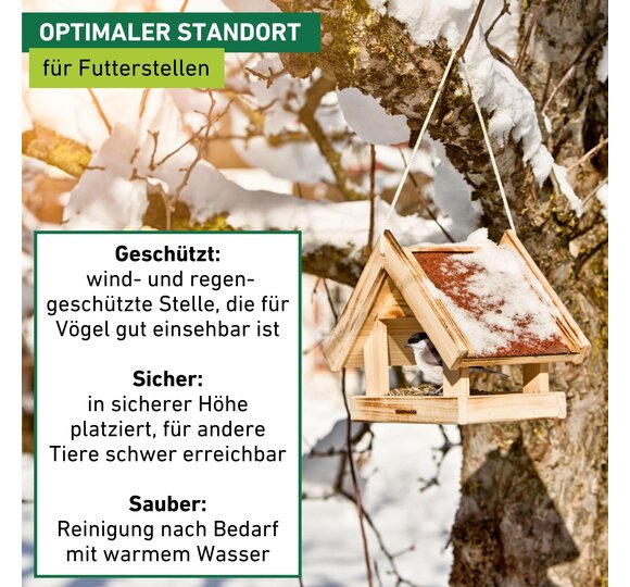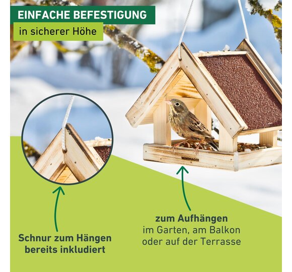 Remplissage de nourriture pour oiseaux adaptée dans l’assiette située sur le côté. Les mélanges de graines prêts à l’emploi, les graines de tournesol, les flocons d’avoine, le pavot, les graines de chanvre, les graines de lin ou les boules de graisse sont parfaits pour attirer les oiseaux préférant la nourriture molle comme les merles, les turdidés, les rouge-gorges et les roitelets. La mangeoire à oiseaux est dotée d’une corde d’accrochage pratique pour un montage encore plus rapide.