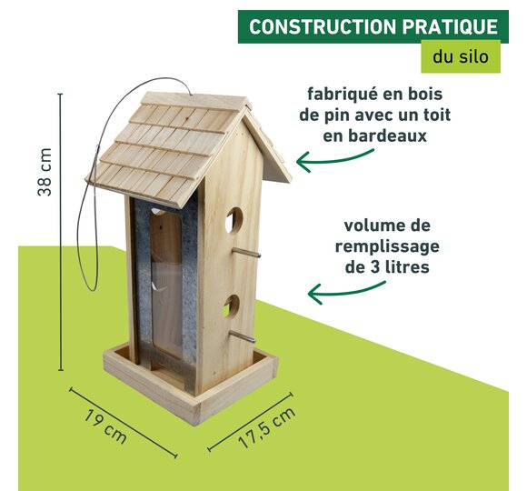 - GRAND VOLUME DE REMPLISSAGE - Le silo peut contenir 3 l de nourriture pour oiseaux