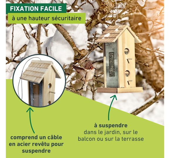 - DOTÉE DE QUATRE PERCHOIRS - Les oiseaux peuvent picorer confortablement des graines sur trois étages