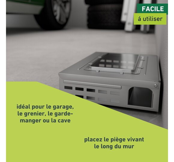 Les souris dans le garage, le grenier ou le garde-manger peuvent causer une multitude de problèmes. Elles rongent tout ce qui se trouve sur leur chemin, des câbles aux emballages alimentaires. Cette souricière apporte une solution respectueuse pour se débarrasser de ces petites bêtes indésirables.