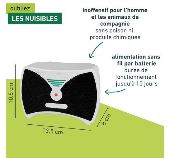 - INOFFENSIF POUR L’HOMME ET LES ANIMAUX DE COMPAGNIE - Sans poison ni produits chimiques : action par ultrasons