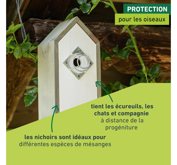 • protège les couvées des chats, fouines, écureuils ou de plus gros oiseaux