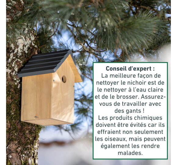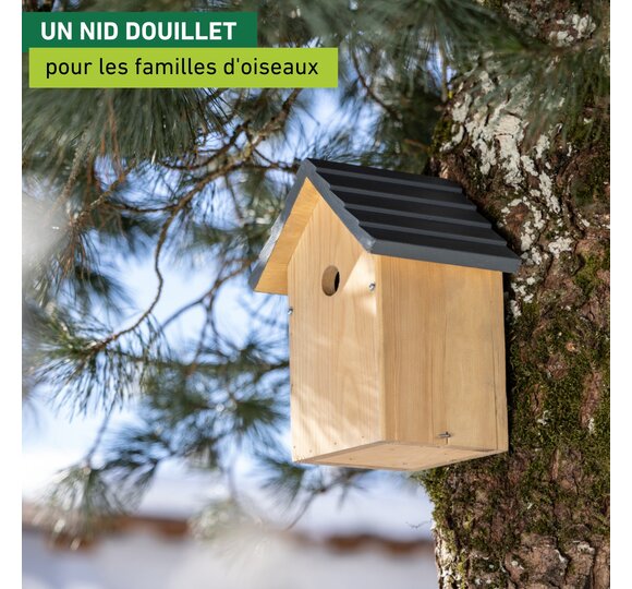 - PROTECTION INTELLIGENTE – Maison en pin massif avec toit en saillie pour protéger le trou d'envol (Ø 28 mm) de la pluie et des prédateurs