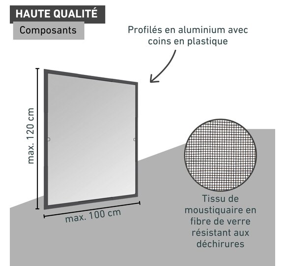 | 03630 | Moustiquaire cadre fixe fenêtre Flexi Fit 100x120cm anthra. | Voir |