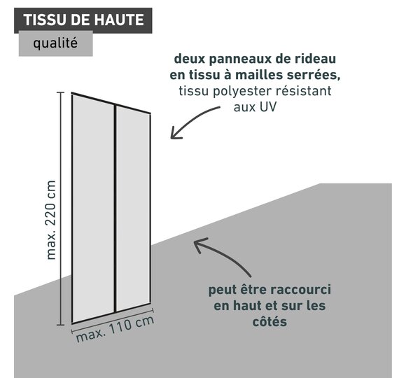 - Recoupable sur le haut et les côtés, avec ourlet sur le bas pour une belle finition