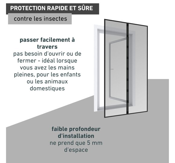 Protégez votre maison contre les insectes gênants avec nos rideaux de porte moustiquaires. C’est la solution parfaite pour une protection rapide et efficace, qui ne vous demandera presque aucun effort, à un coût avantageux. Nos rideaux de porte offrent une alternative innovante aux méthodes traditionnelles : nul besoin d'un cadre fixe pour les monter, ce qui en fait une solution extrêmement peu encombrante et très flexible.