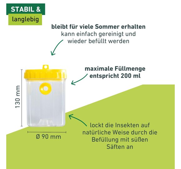 - PROTECTION RESPECTUEUSE DE L’ENVIRONNEMENT CONTRE LES GUÊPES – Le piège à guêpes et à mouches de Windhager attire les insectes de manière naturelle avec du jus sucré ; une fois pris au piège, ils ne peuvent plus en sortir