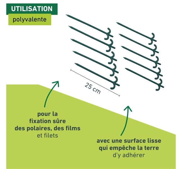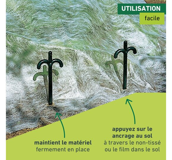 Pour ancrer en toutes circonstances les voiles et films dans le sol.