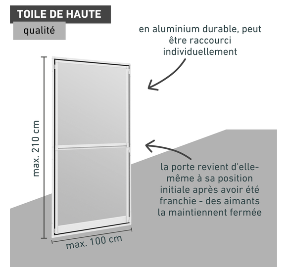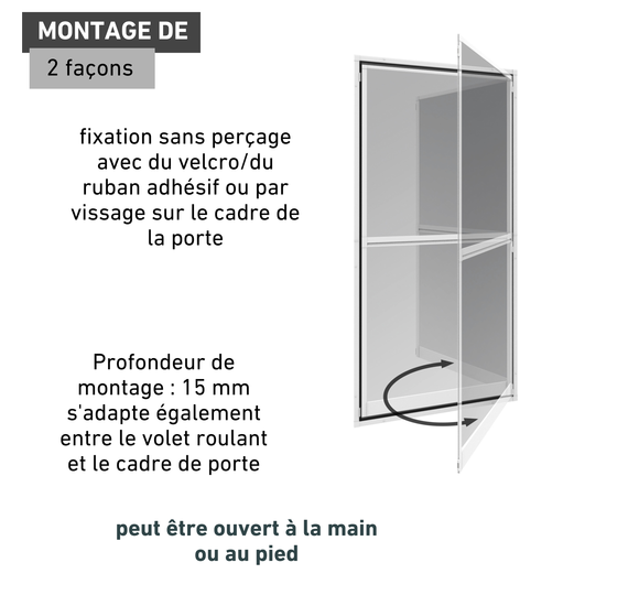 - Kit complet pour une porte moustiquaire qui s'ouvre vers l'intérieur et l'extérieur et se ferme toute seule