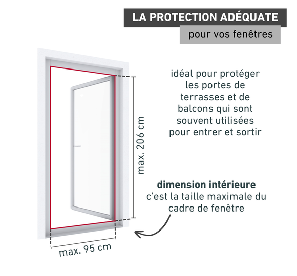 Taille de l'ouverture de la porte (dimension de la lumière) : max. lxH 95x206 cm