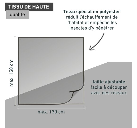 • TAILLE FACILEMENT ADAPTABLE - La toile est découpée aux dimensions requises de la fenêtre à l'aide de ciseaux.