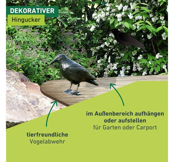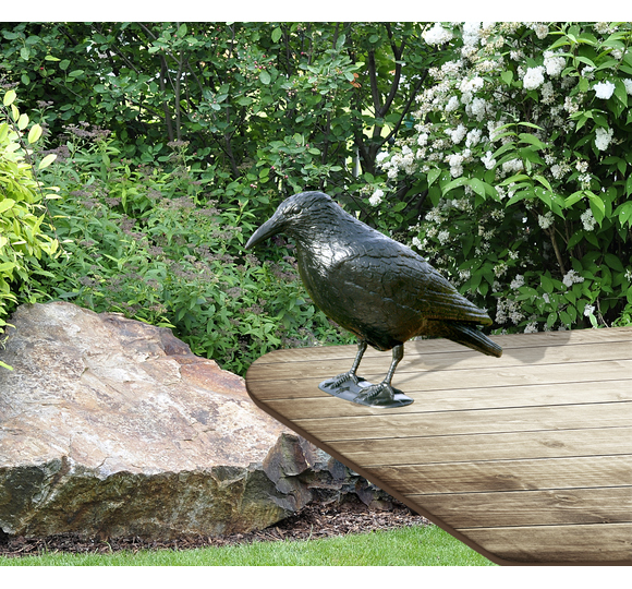 Faux corbeau - un bon répulsif contre les oiseaux dans les potagers et sur les abris de voiture