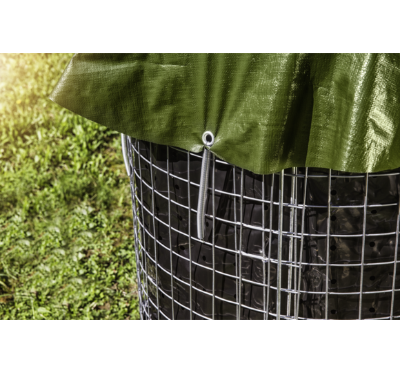 - PROTECTION OPTIMALE DU COMPOSTEUR - Le ressort de tension garantit un maintien sûr de la bâche sur la grille du compost