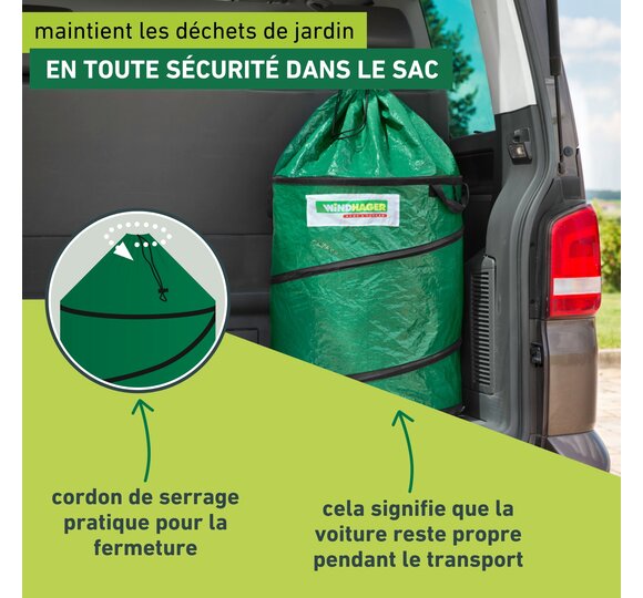 - CORDON DE TRACTION PRATIQUE POUR FERMER - Maintient les déchets de jardin en toute sécurité dans le sac, ce qui permet de garder la voiture propre pendant le transport