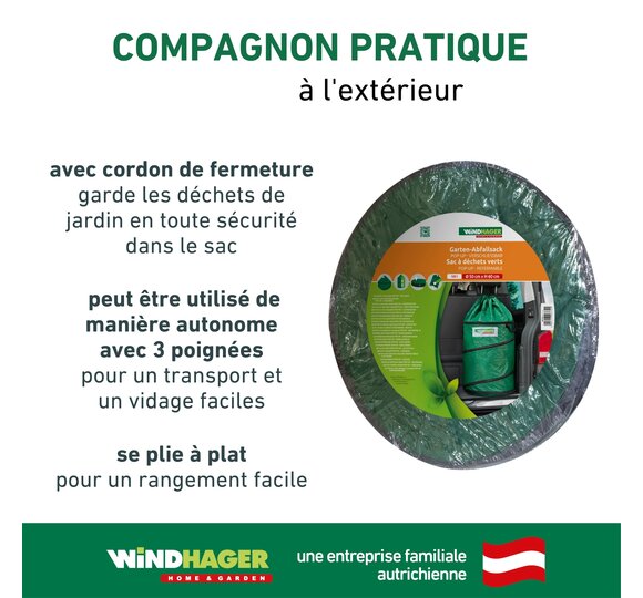 Ce sac de jardin robuste est équipé d’un fermoir en cordon pour le transport sûr des déchets de jardin. Les déchets restent ainsi dans le sac et la voiture reste propre. Après utilisation, ce sac peut être replié en quelques gestes pour gagner de la place.