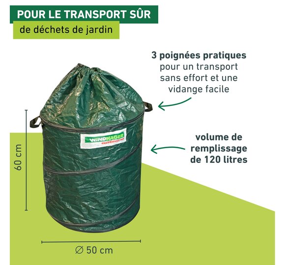 - AVEC POIGNÉES DE TRANSPORT - 3 poignées pour un transport sans effort et un vidage facile du sac de jardin