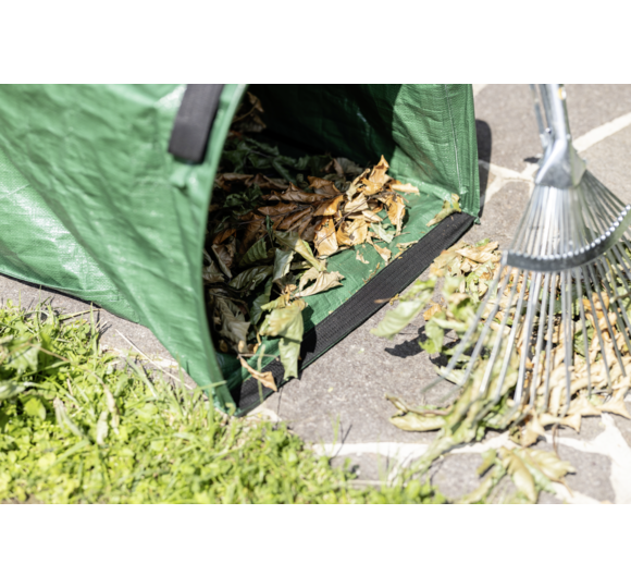C’est lorsque les feuilles tombent et que les arbustes et les haies doivent être taillés que l’on se rend compte de la quantité de travail que demande un jardin. Grâce au sac de jardinage bien pensé, doté d’un rebord, ramasser les feuilles mortes et les déchets verts devient un jeu d’enfant. Grâce à son anneau de renfort métallique intégré pratique, le sac peut être posé à plat sur le sol et maintenu ouvert. Les déchets de jardin peuvent ainsi y être poussés aisément à l’aide d’un râteau ou d’un balai, sans avoir à se baisser ni à soulever les déchets de jardin à la main. D’une capacité d’environ 150 litres, il offre beaucoup d’espace pour tous types de déchets de jardin. Une fois le travail terminé, il peut être facilement vidé à l’aide des trois sangles de transport, puis rangé de manière peu encombrante. Ce sac pour déchets de jardin montre à quel point maintenir son jardin en ordre peut être facile.
