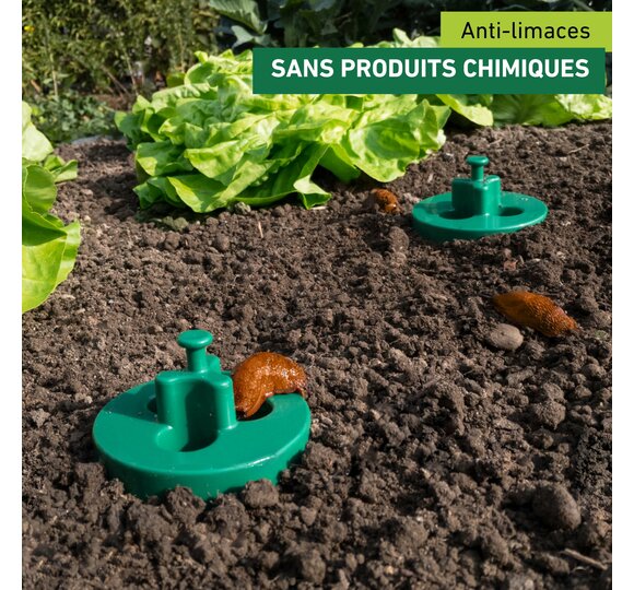 Dites adieux aux limaces ! Finies les salades et les plantes potagères dévorées. Le piège à limaces en plastique dur permet de lutter efficacement contre les limaces sans hélicide pour le bien de tous les propriétaires de jardin. Ce piège se nettoie rapidement et se remplit facilement d’un appât (p. ex. de la bière) en dévissant le couvercle.