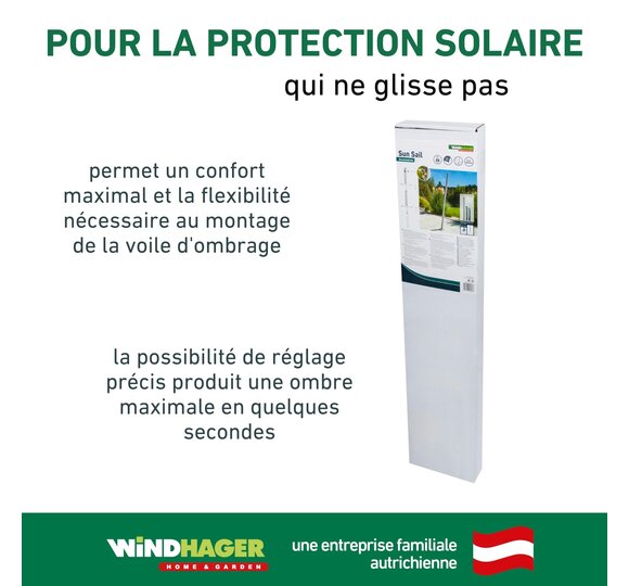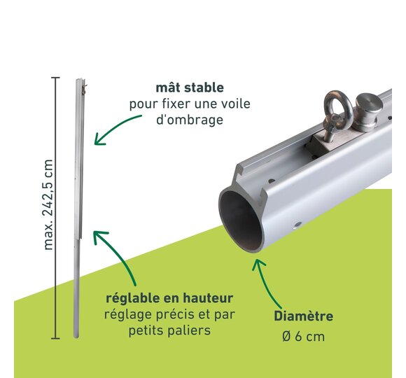 - MÂT STABLE – Pour fixer une voile d’ombrage jusqu’à 25 m² (hauteur du mât max. 242,5 cm)